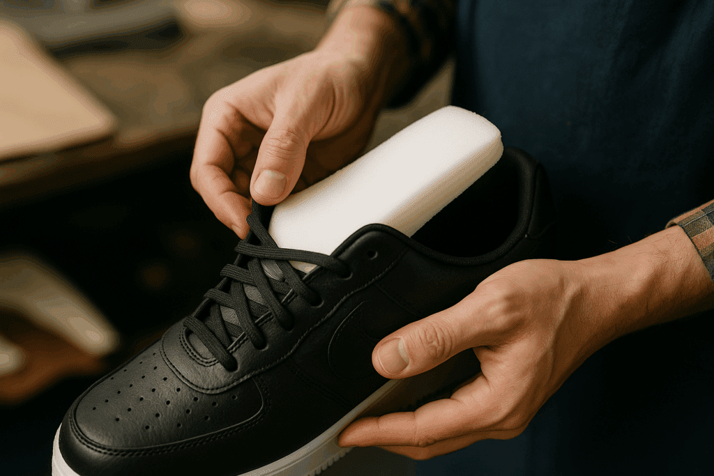 Used in the manufacturing of shoes for padding